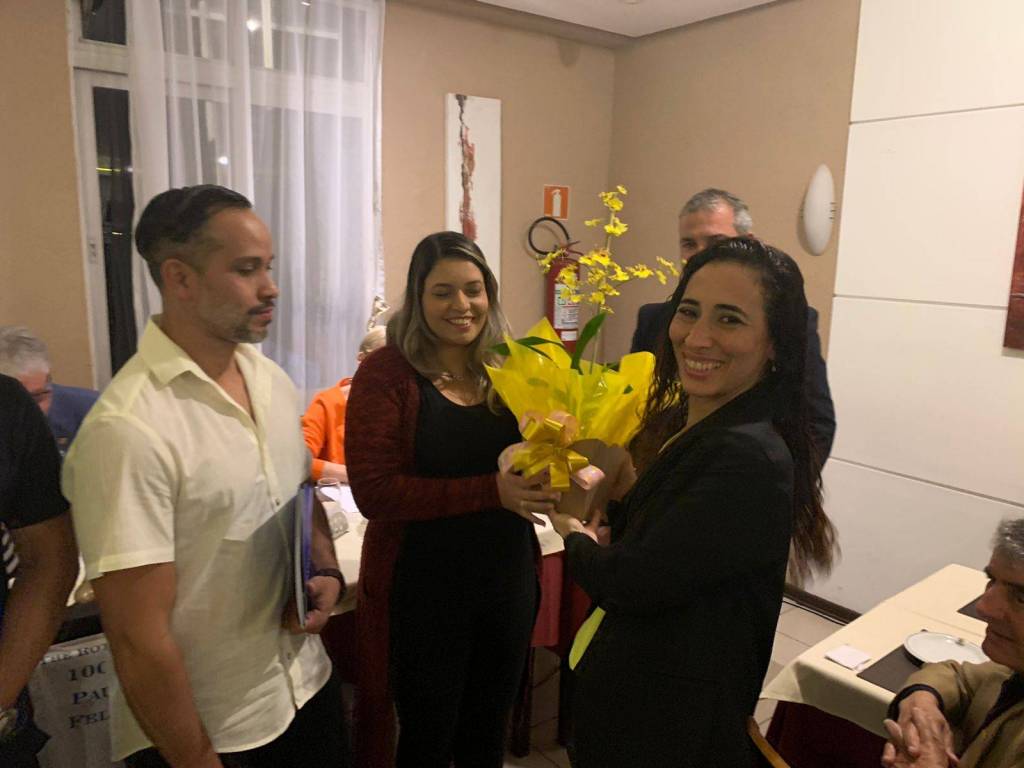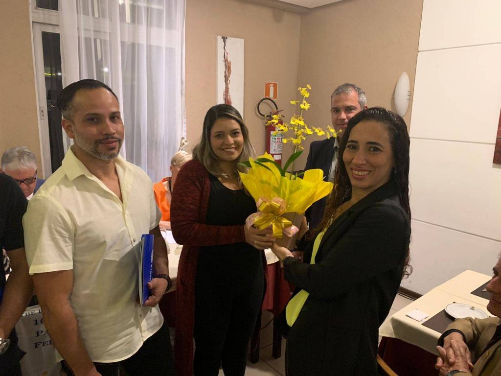 Na reunião tivemos a presença de Maria Cláudia presidente do RC Santos Porto, Marco Antônio Ribeiro Comp. do RC de Santos Oeste e. Maria Estela do RC de Santos Boqueirão e o Intercambista da Tailândia.