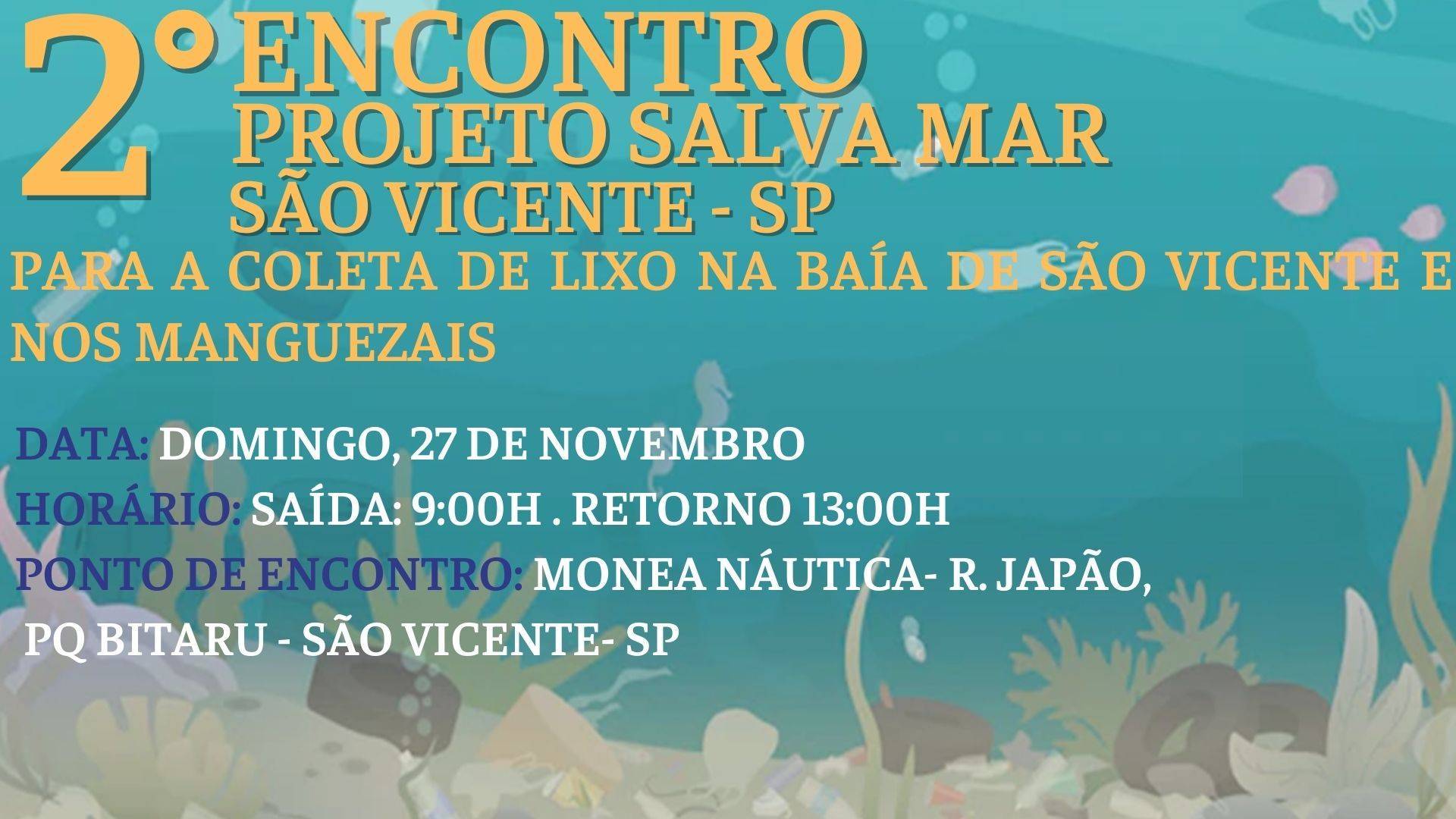 Neste domingo, 27/11 estará acontecendo o 2° "Projeto Salva Mar" em São Vicente, para a coleta de lixo na Baía de São Vicente e nos manguezais.