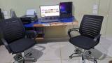2 cadeiras giratórias com rodas .