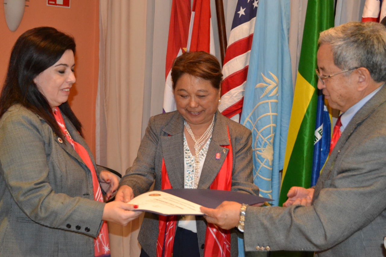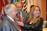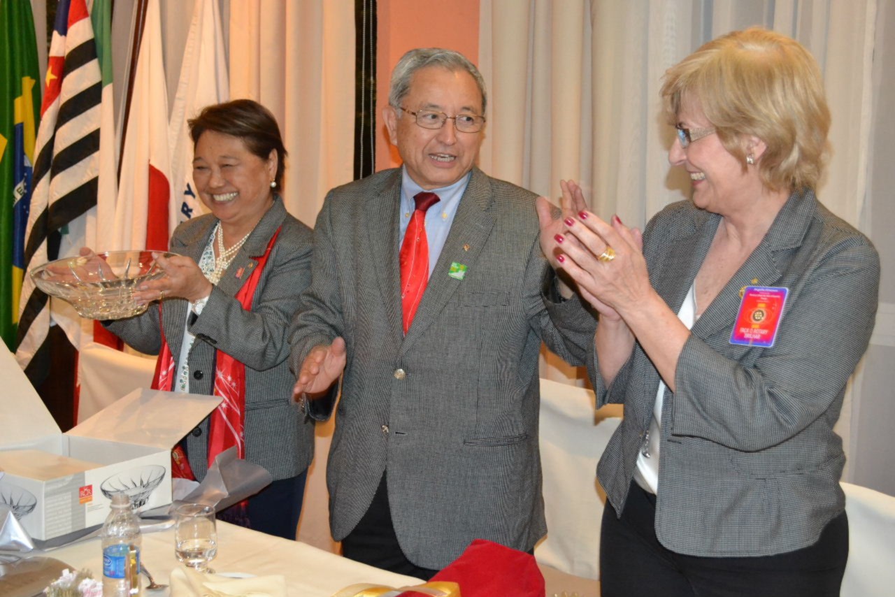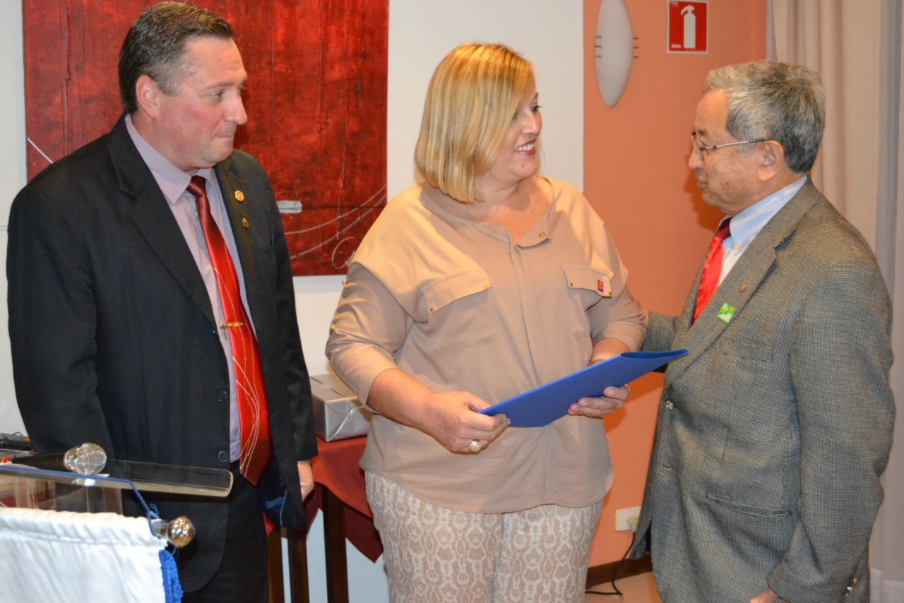 A dentista Júlia Mara Marucci de Castro, recebeu as boas vindas do governador Hiroshi Shimuta e da presidente brilhante, que saudou a nova companheira, oficializando sua admissão perante os companheiros e convidados.