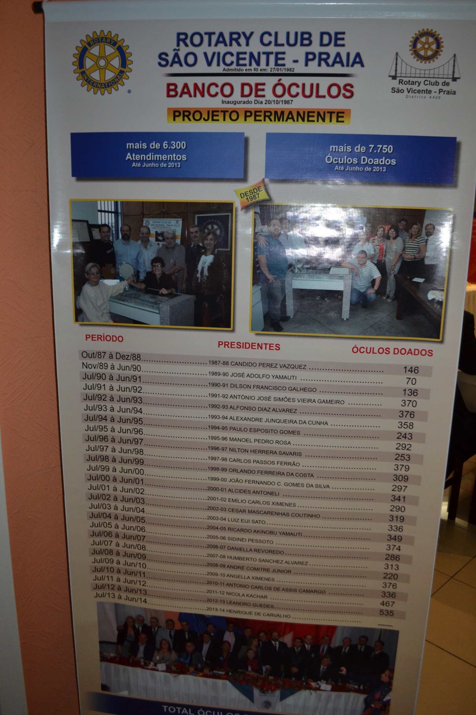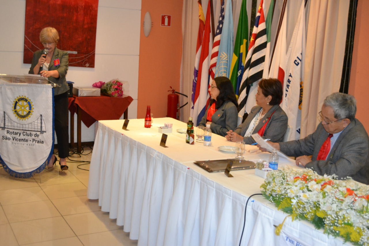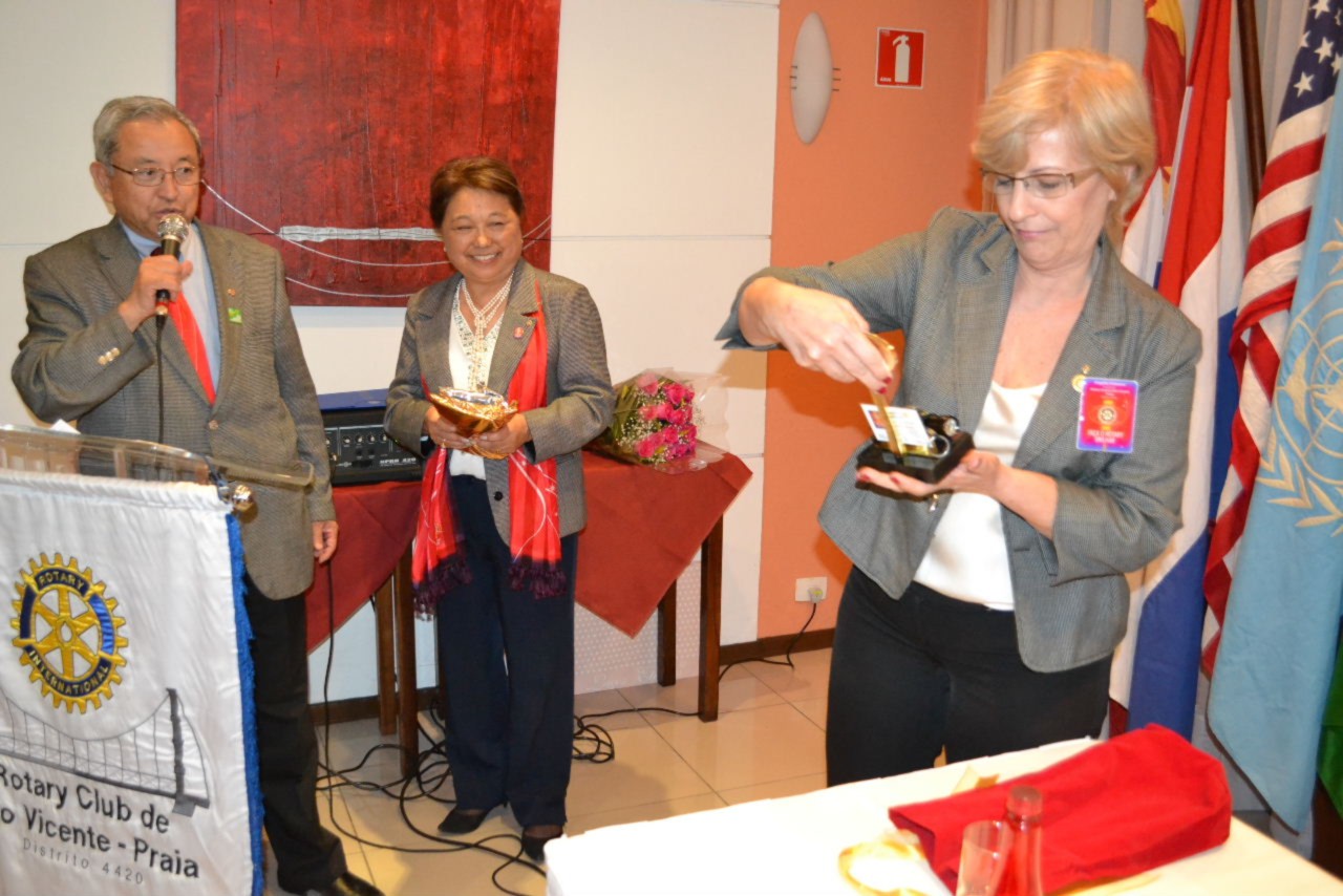 O Rotary Club de São Vicente Praia recebeu Visita Oficial do casal governador Hiroshi e Suma Shimuta, que conheceu o projeto permanente Banco de Óculos, mantido pelo clube que no ano rotário 2014-2015 é presidido por Angella Ramos Martins Ximenes.