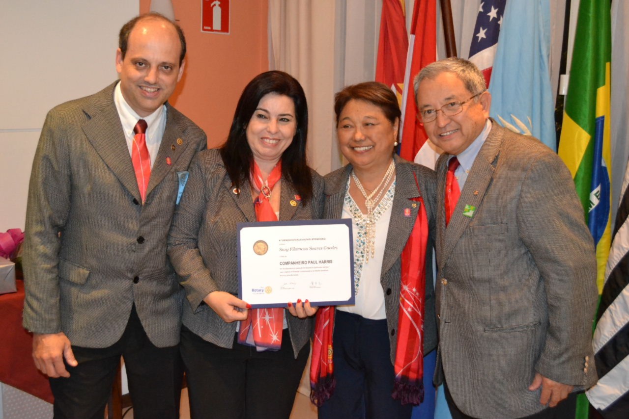 O GA da Área 11 e companheiro do clube, Leandro Guedes fez a outorga de um Título Paul Harris à Suzy Filomena Soares Guedes, sua esposa, prestando uma homenagem especial e contribuindo dessa forma com os projetos da Fundação Rotária.