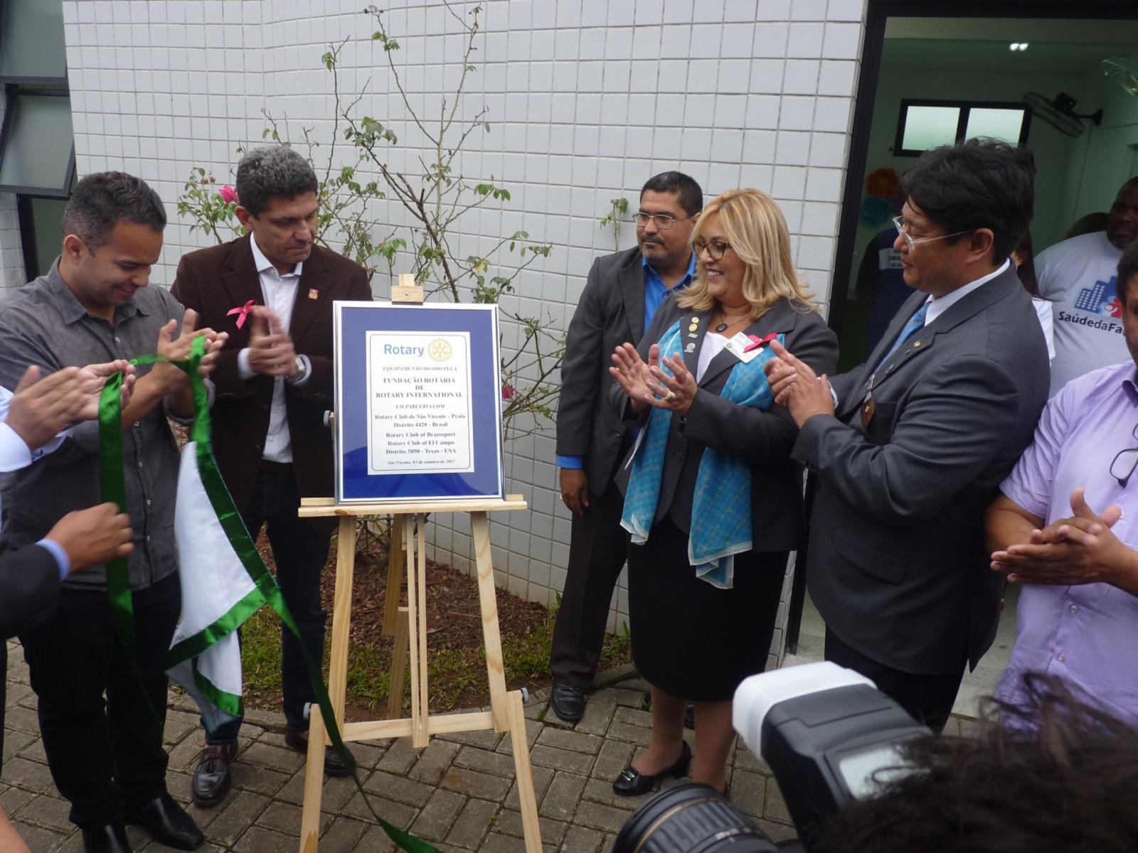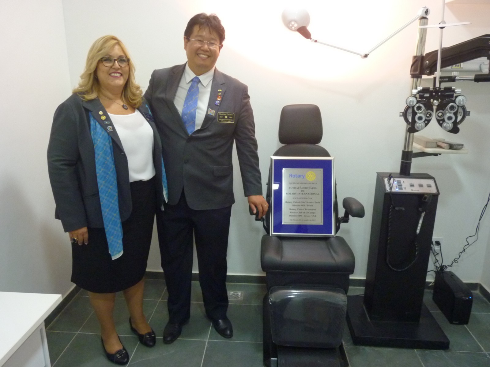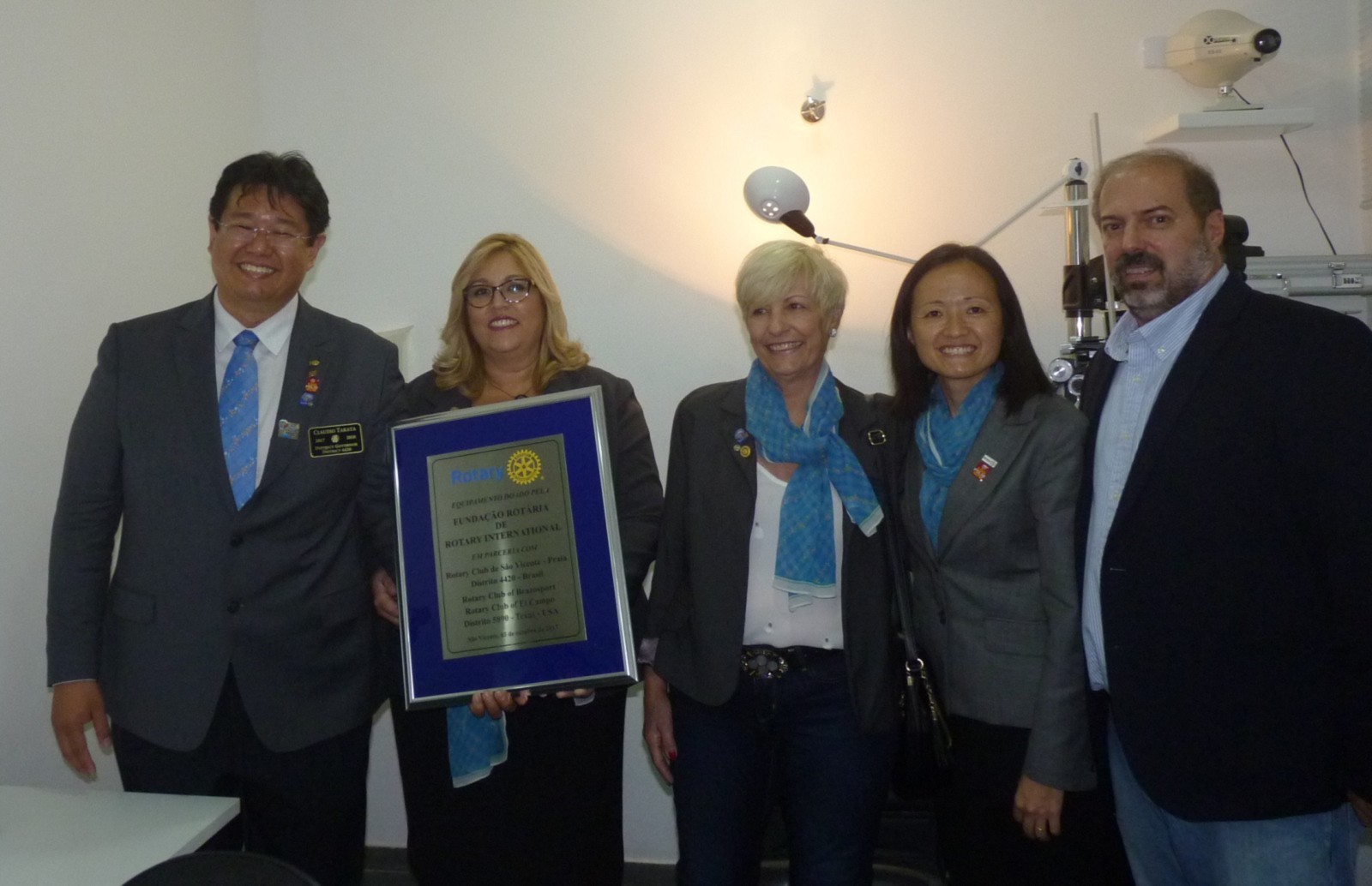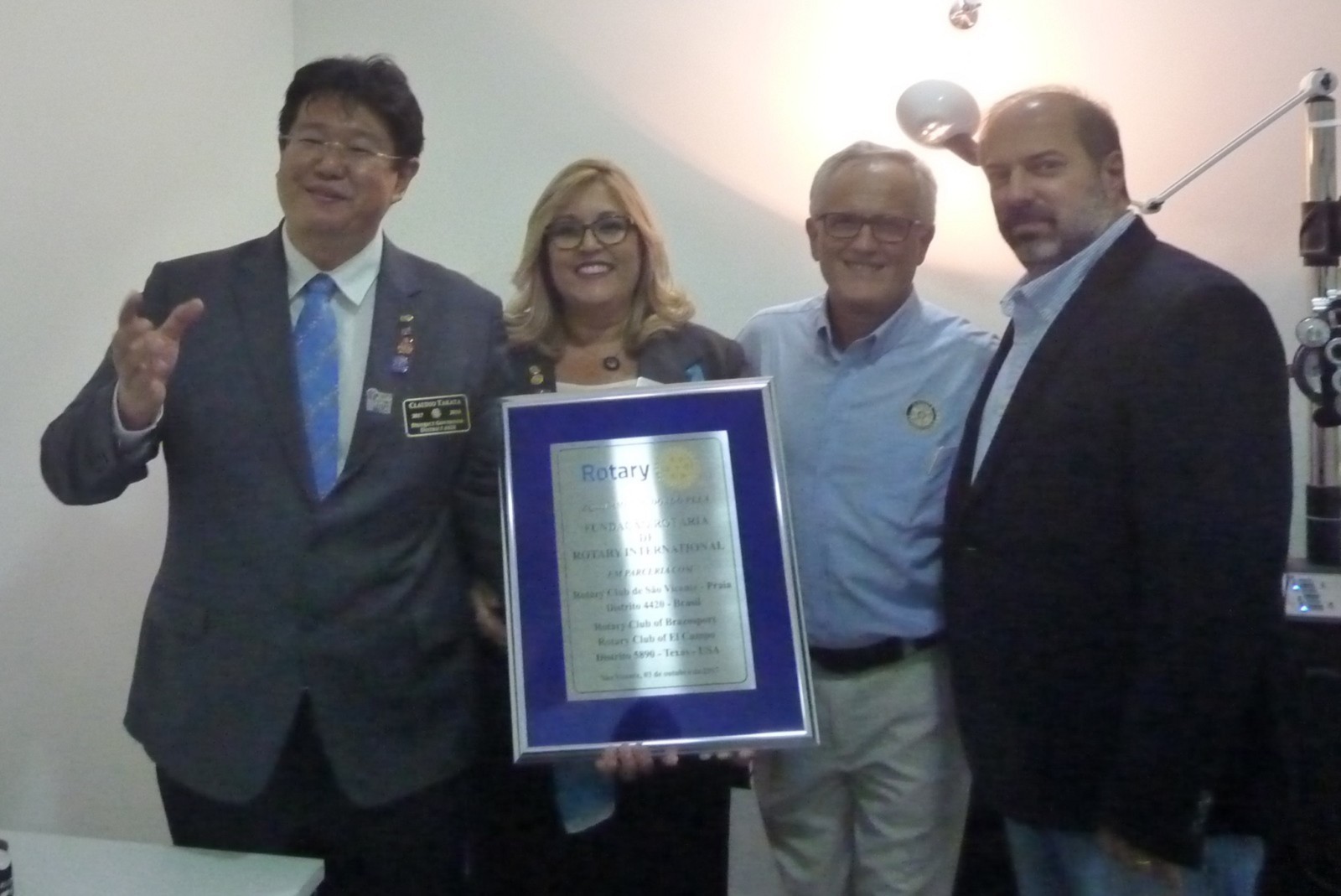 Claudio Takata afirma que este foi um dia histórico. Estamos viabilizando não apenas novos equipamentos oftalmológicos, mas sonhos e esperanças. Segundo ele, ajudar às crianças a ter uma boa visão, melhora em outras áreas, e por isso é tão importante que essa região carente receba um consultório de qualidade. O bem estar do próximo é nossa responsabilidade para uma sociedade mais justa. O governador aproveitou a ocasião para reforçar a campanha mundial da poliomielite realizada no Distrito 4420 e presenteou o prefeito com um pin que leva o logo End Polio Now, agradeceu a oportunidade que a prefeitura deu aos rotarianos de fazer a diferença.