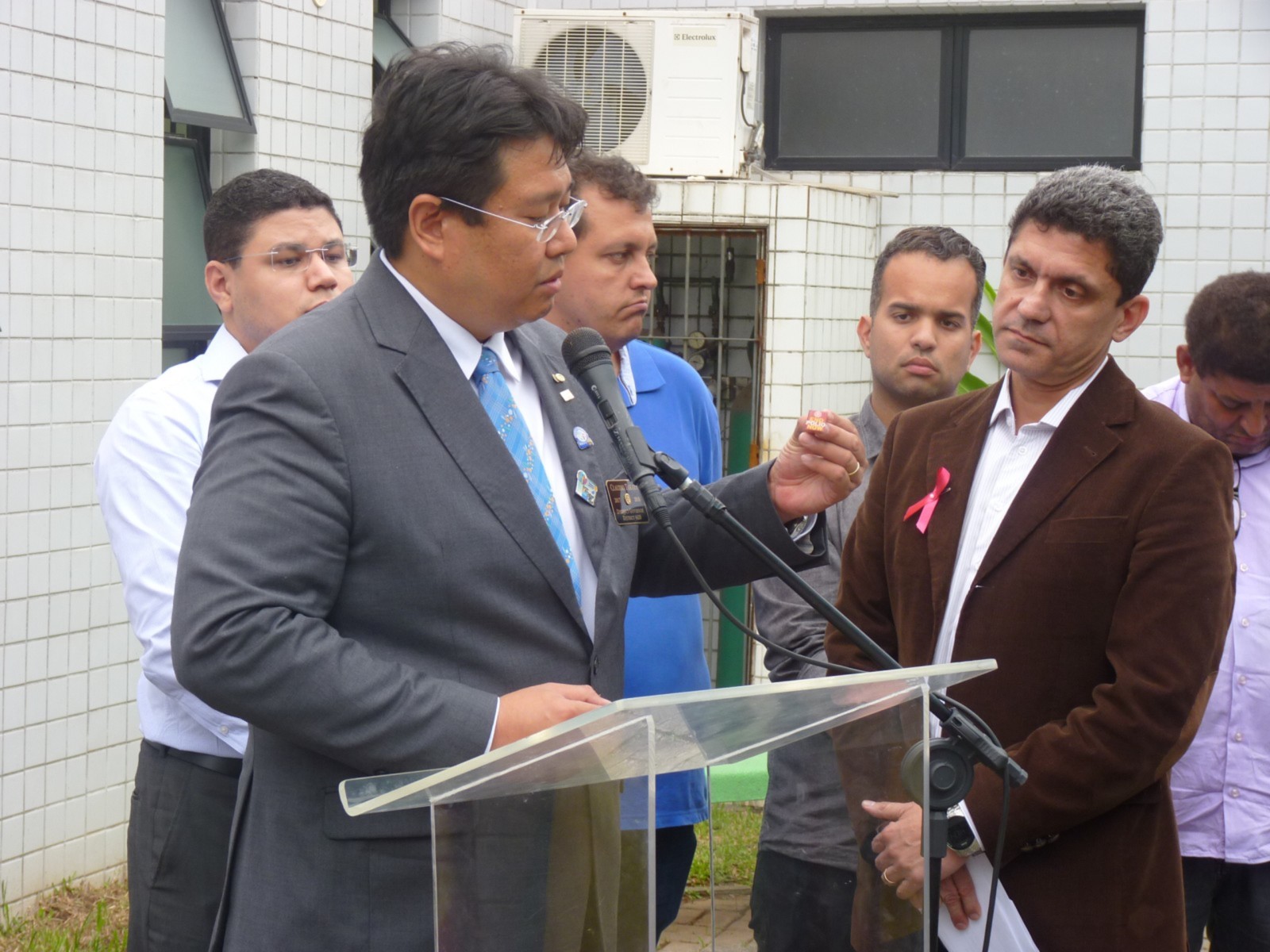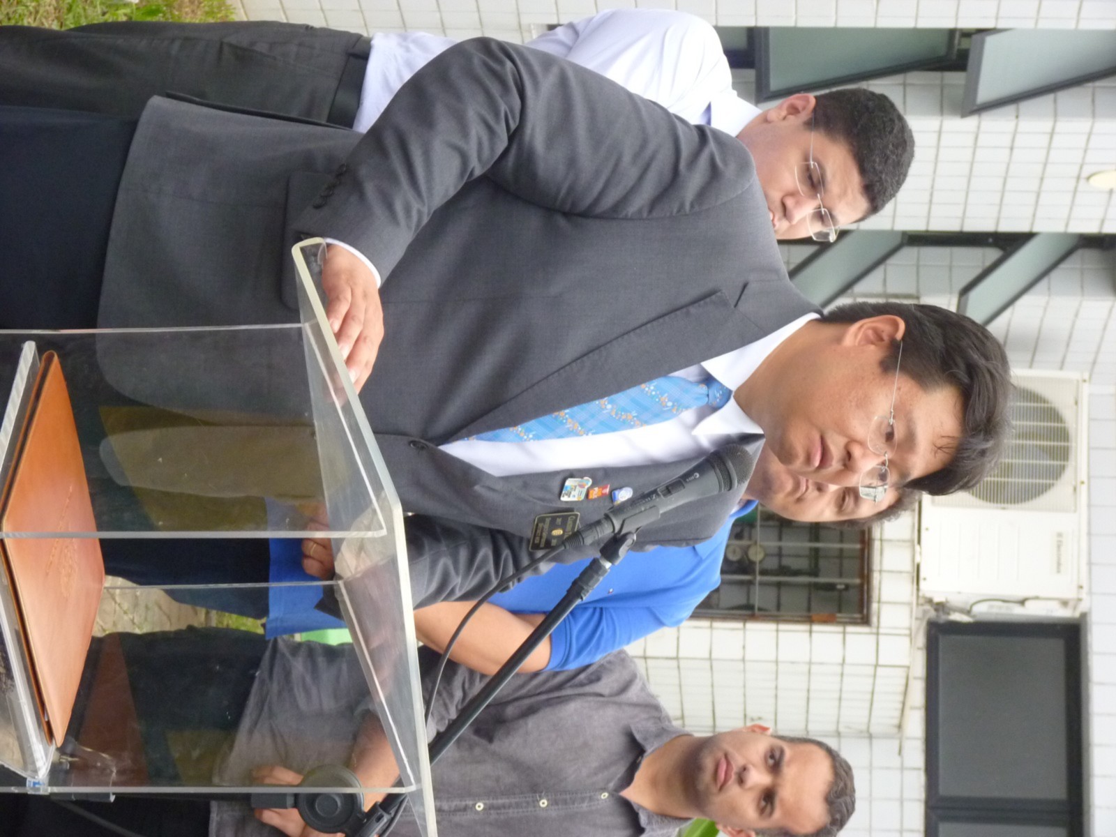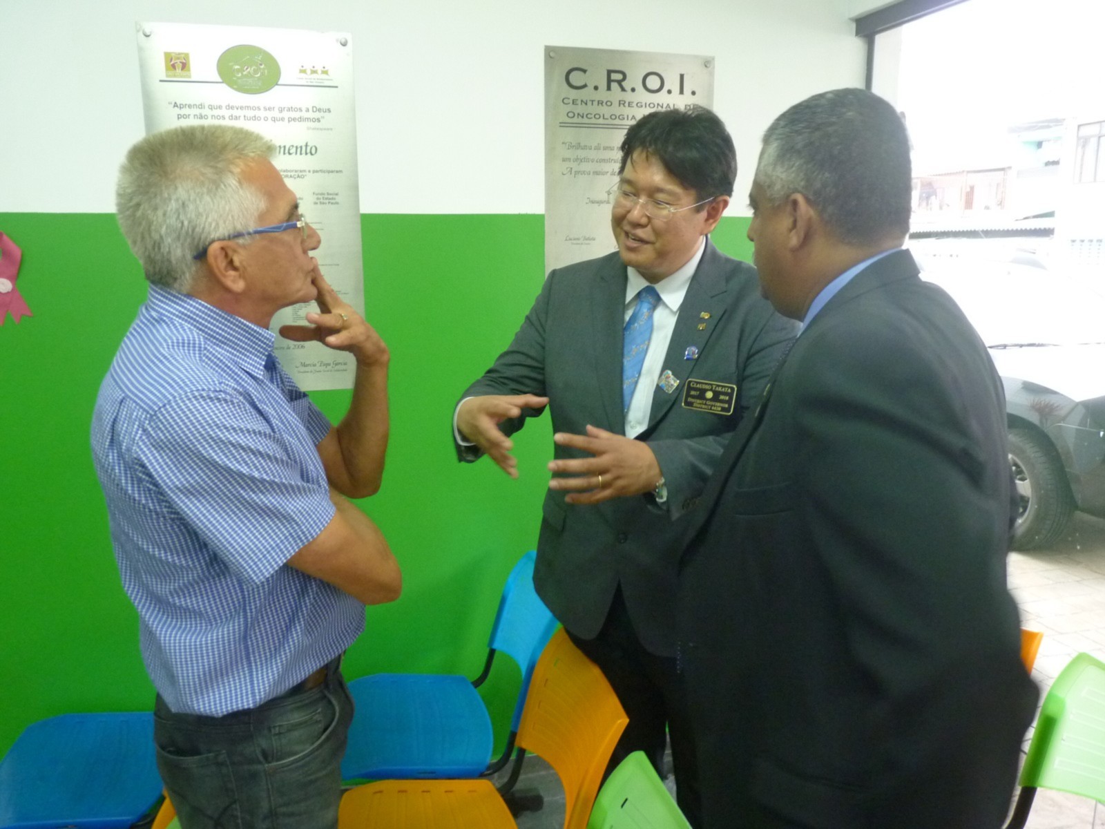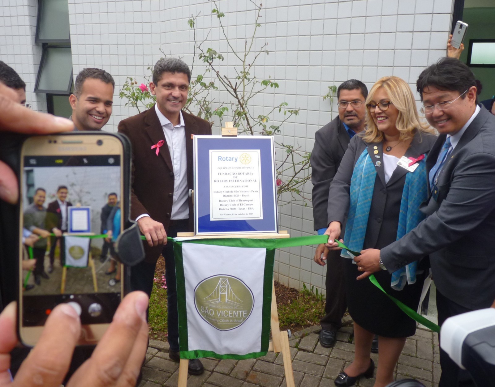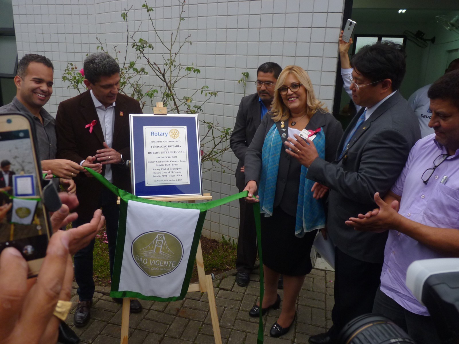 Claudio Takata afirma que este foi um dia histórico. Estamos viabilizando não apenas novos equipamentos oftalmológicos, mas sonhos e esperanças. Segundo ele, ajudar às crianças a ter uma boa visão, melhora em outras áreas, e por isso é tão importante que essa região carente receba um consultório de qualidade. O bem estar do próximo é nossa responsabilidade para uma sociedade mais justa. O governador aproveitou a ocasião para reforçar a campanha mundial da poliomielite realizada no Distrito 4420 e presenteou o prefeito com um pin que leva o logo End Polio Now, agradeceu a oportunidade que a prefeitura deu aos rotarianos de fazer a diferença.