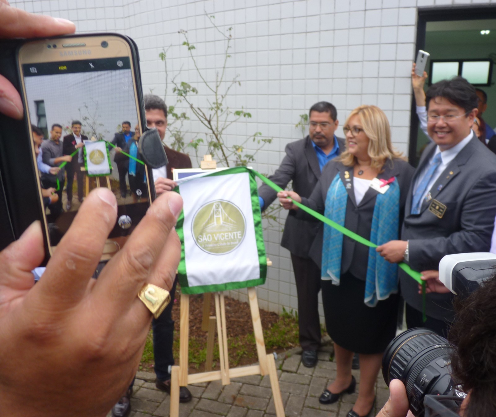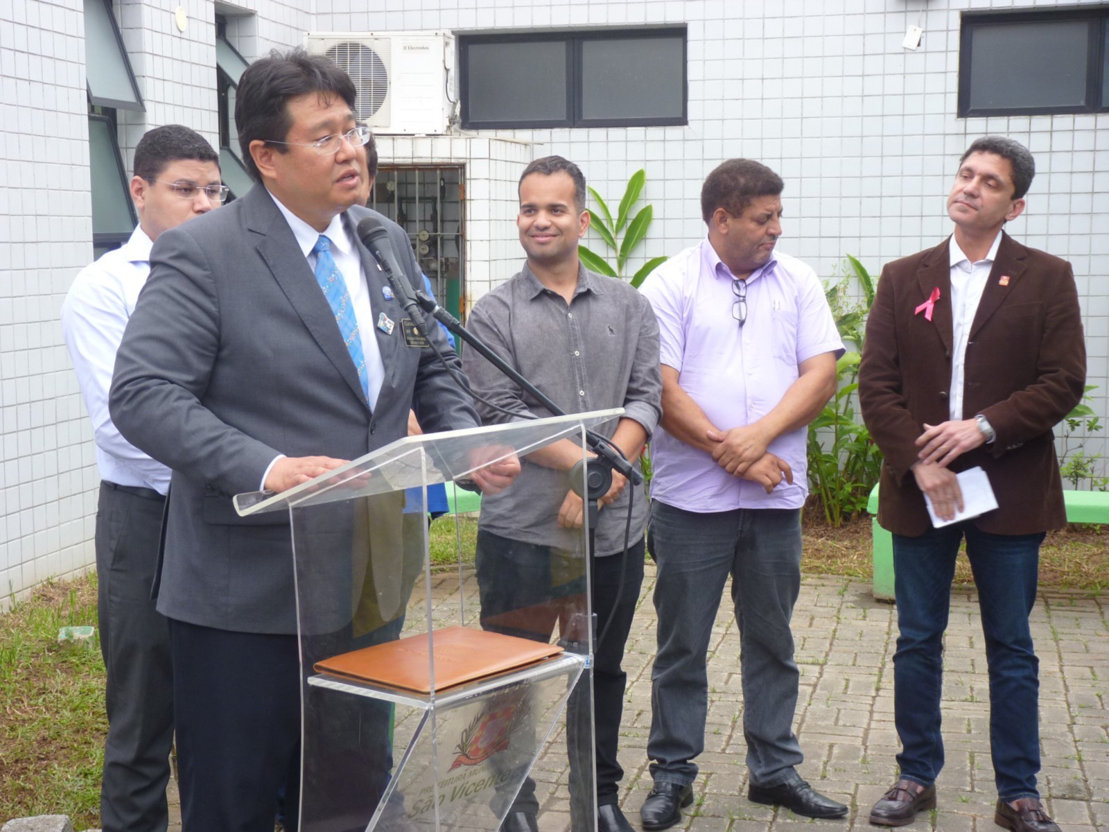 O prefeito agradeceu a parceria do Rotary. Os equipamentos vêm ao encontro de tudo o que a gente tem falado, o nosso atendimento de saúde está sendo ampliado e estendido para que possamos atender melhor a comunidade. Para ele, a visão está ligada diretamente com a educação e rendimento escolar das crianças e por isso se mostra tão importante. A saúde de São Vicente está comemorando. É louvável a ação do Rotary Club São Vicente Praia e Rotary Internacional, juntos levantaram a verba para que esse consultório pudesse ser feito aqui na Vila Margarida. Governador Claudio, a cidade está de portas abertas, hoje queremos honrá-los, o trabalho de vocês é admirável. Nesta mesma unidade, em 2010, tivemos uma parceria na implantação da sala de audiometria, que até hoje atende a população. O tapete vermelho sempre estará estendido ao Rotary, desta forma caminharemos juntos, parabéns!, agradece Pedro Gouvêa.