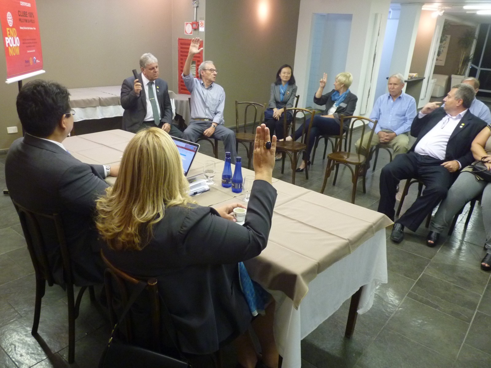 Em seguida, a equipe distrital retornou ao Terraço Chopp, onde foi realizada uma breve reunião entre o governador e a presidente do clube, enquanto Angella Ximenes, governadora assistente, reunia-se com membros da secretaria, tesouraria e presidente eleito 2018-19, Leandro de Carvalho Guedes.