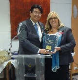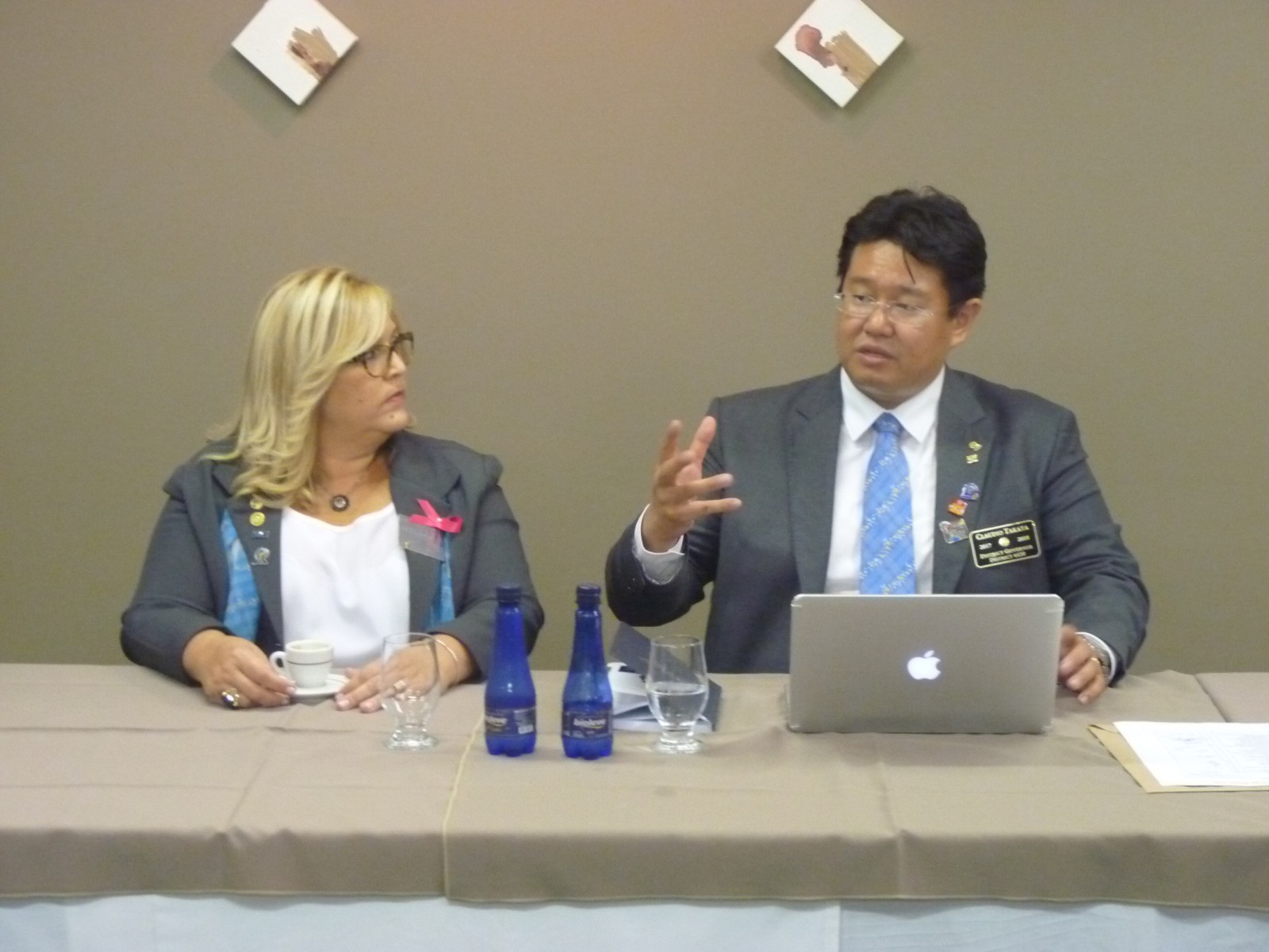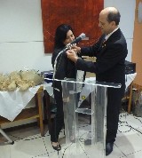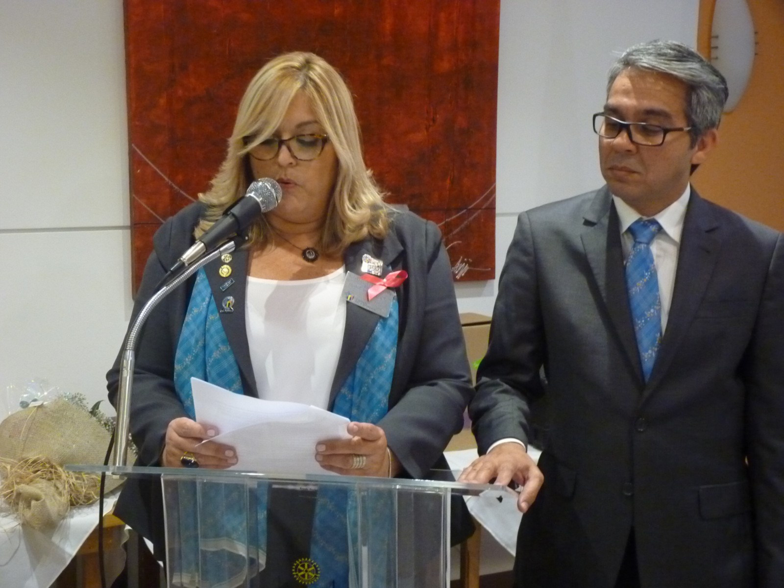 O casal foi recebido pela governadora assistente da área 14, Angella Ximenes, acompanhada pela presidente do clube, Júlia Mara Marucci Castro, Marcos Franco, presidente da Comissão Distrital da Fundação Rotária e companheiros rotarianos.