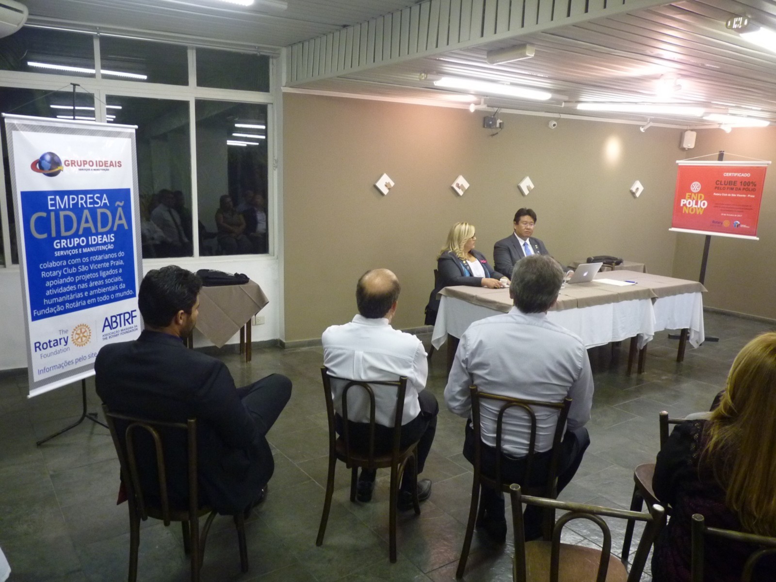 Após foi realizada à assembleia com integrantes da equipe rotária. Takata reforçou que para o novo ano rotário 2017-2018 foram definidas como prioridades as seguintes estratégias organizacionais: fortalecimento e apoio aos clubes; maior enfoque a expansão dos serviços humanitários como o reforço do combate a poliomielite, o plantio de árvores, aumento da projeção e imagem pública da organização, entre outros. Ele aproveitou para agradecer e parabenizar o empenho e dedicação de toda a equipe na realização na inauguração do consultório oftalmológico.