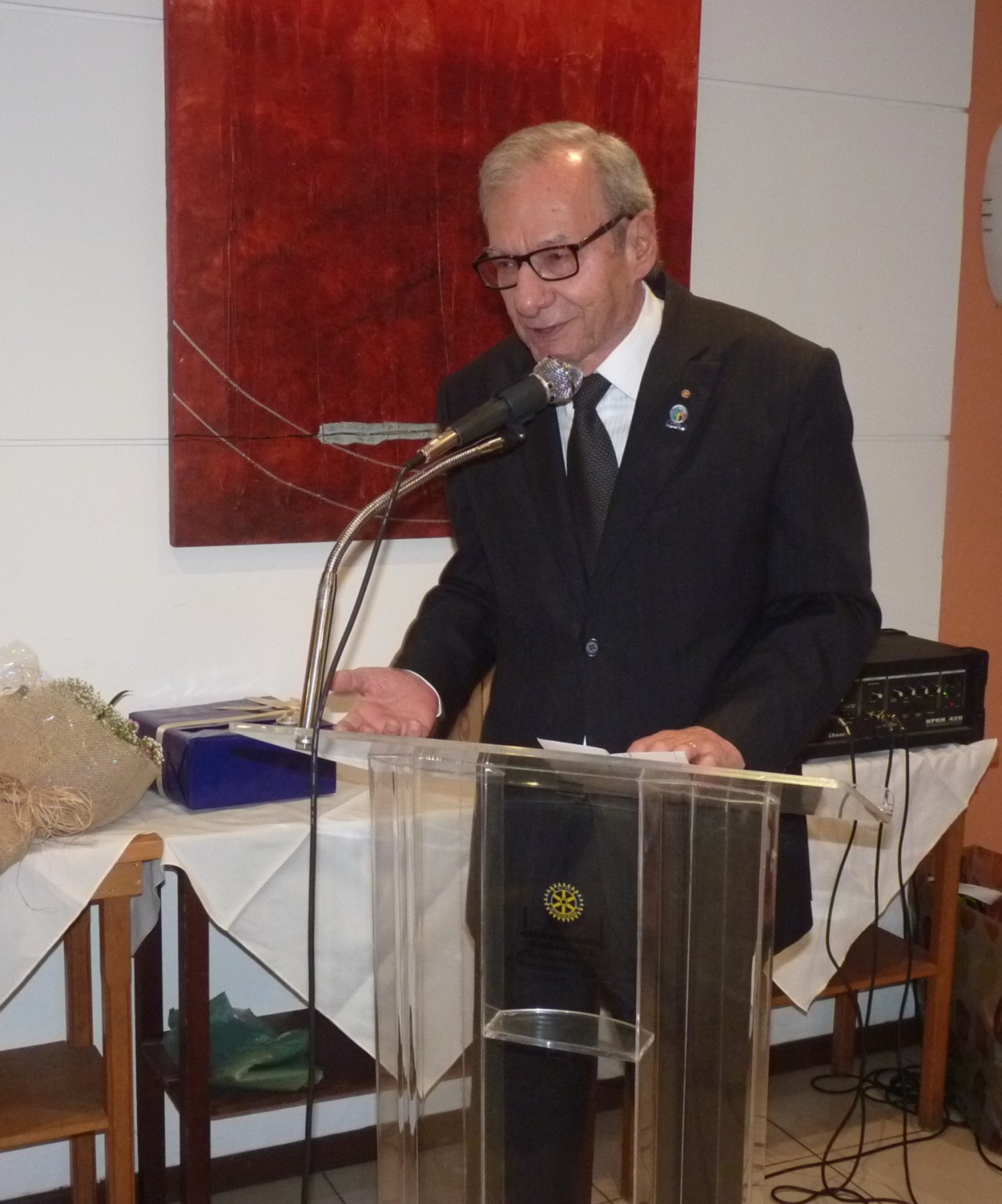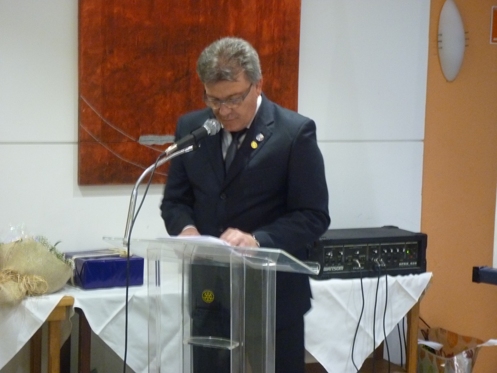 Em seu discurso, Claudio, reforçou sobre a continuidade dos trabalhos do Rotary International, citando alguns valores sobre companheirismo, comprometimento, integridade, diversidade, liderança, entre outros. Parabenizou o projeto visitado e agradeceu a colaboração do rotariano e oftalmologista, Henrique Carvalho, que fez parte da consultoria técnica do consultório. Aproveitou mais uma vez reforçar aos associados sobre o fim da poliomielite e apresentou Aline Meret Etter, intercambista da Suiça, RC Lyss Aarberg, Distrito 1990, agradeceu a jovem por escolher o Brasil na realização de seu intercâmbio.