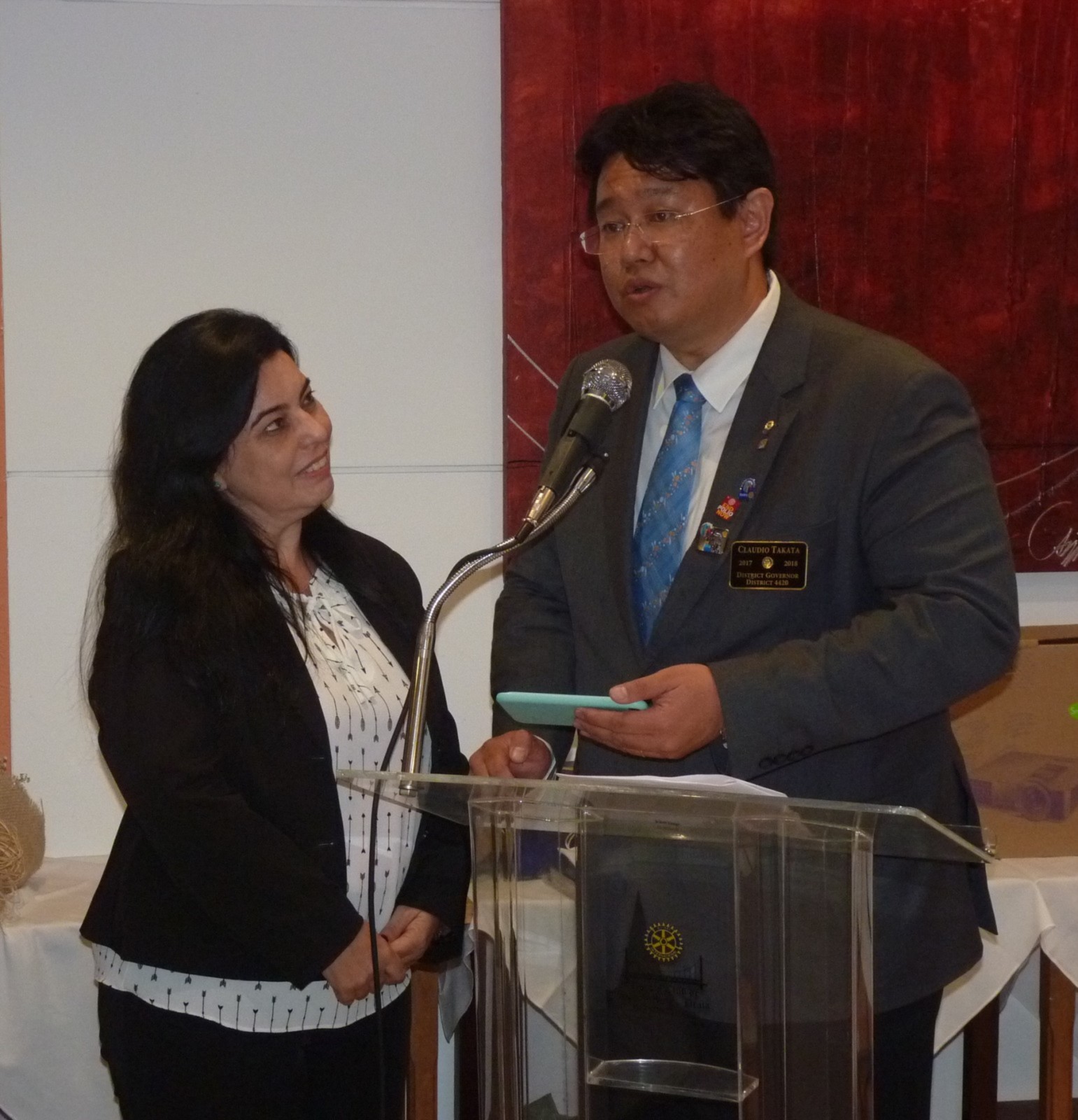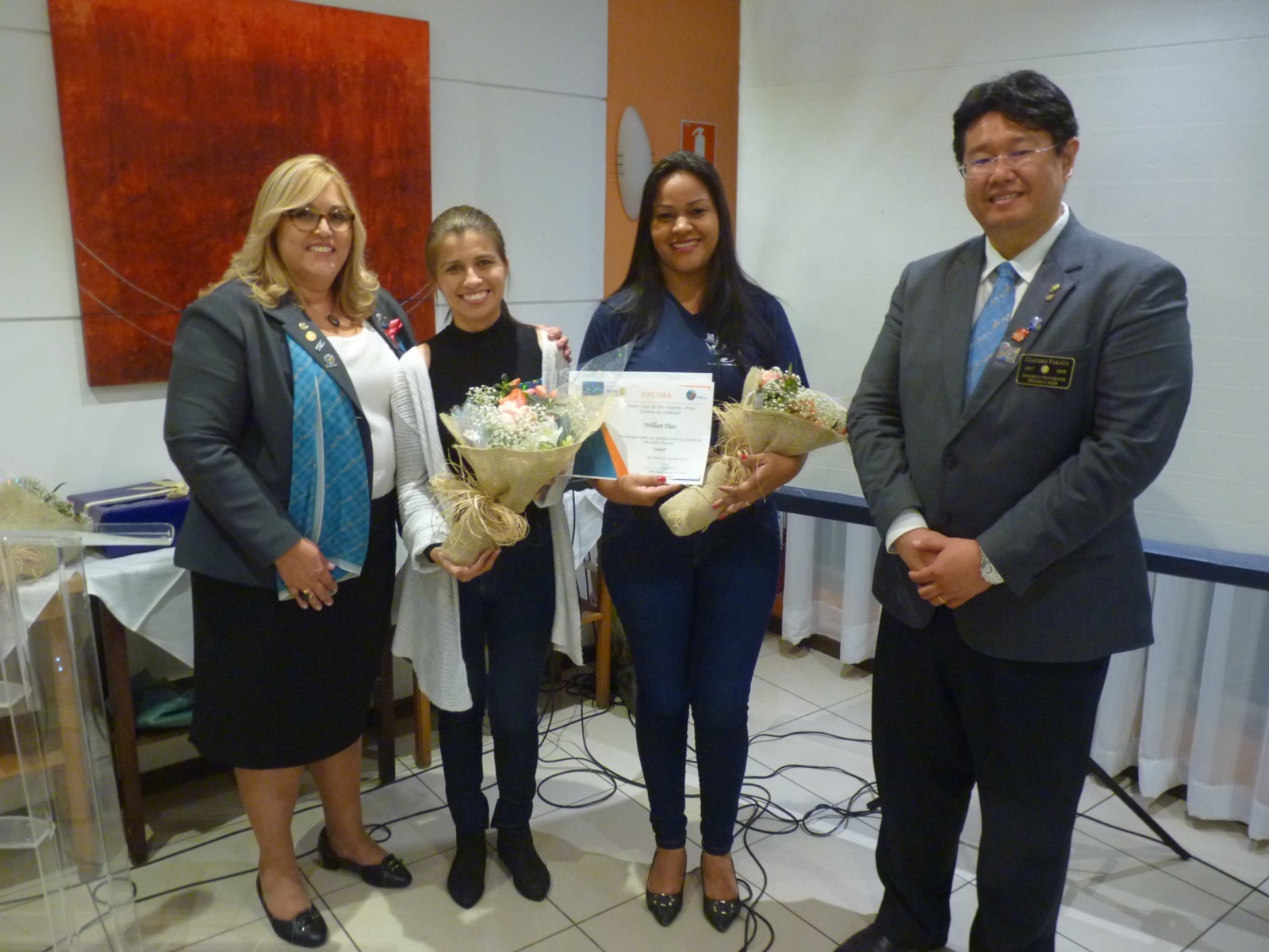 Takata agradeceu aos 20 associados que fizeram a doação de até US$ 100 à Fundação Rotária, pediu que ficassem de pé ao receber o cumprimento de todos, além de receber o pin Erey das mãos do governador, foram eles: Ciro, Júlia, Almeida, Herrera, Angella, Djanira, Soncini, Henrique, Alcides, Leandro, André, Suhayl, César, Valente, Della Libera, Barreto, Vander, Glair, Pessoto e Nei. Outros três companheiros receberam o título Paul Harris, doações feitas em até US$ 1.000: Raimundo Vasquez Valente, Vander Silva Saturnino e Maria Djanira Almeida.