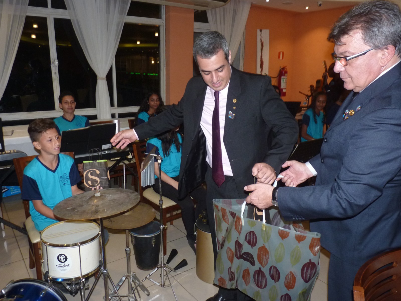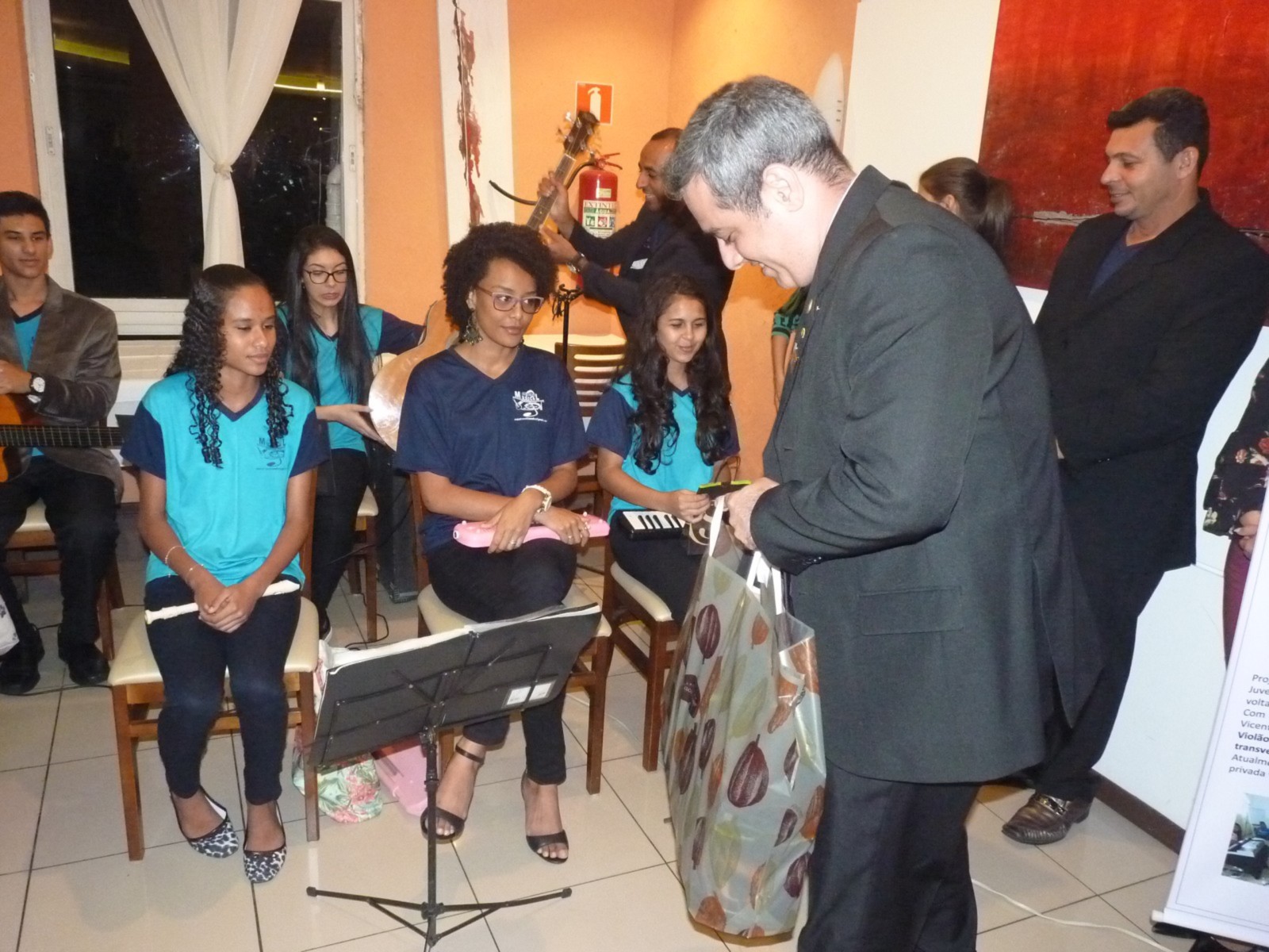 Durante o jantar, alunos do projeto Juball Music, mantidos pelo Instituto Social de Incentivo à Musicalização Infanto Juvenil da Área Continental em São Vicente, realizaram uma bela apresentação musical. Os jovens tocaram músicas de renomados cantores da música popular brasileira, emocionando e contagiando todos os presentes.