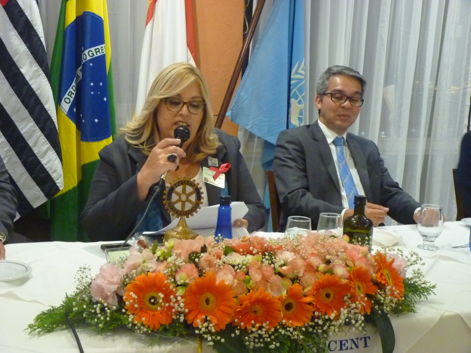 Júlia Marucci fez um breve discurso e agradeceu à presença de todos, afirmou sobre a tarde agradável que passou ao lado do casal governador, falou sobre suas metas, sobre o projeto permanente do banco de óculos, novos projetos e pediu aos associados que continuem a colaborar com este novo Conselho Diretor. Aproveitou a cerimônia para empossar a nova companheira Suzy Guedes, apadrinhada pelo esposo e rotariano Leandro Guedes.